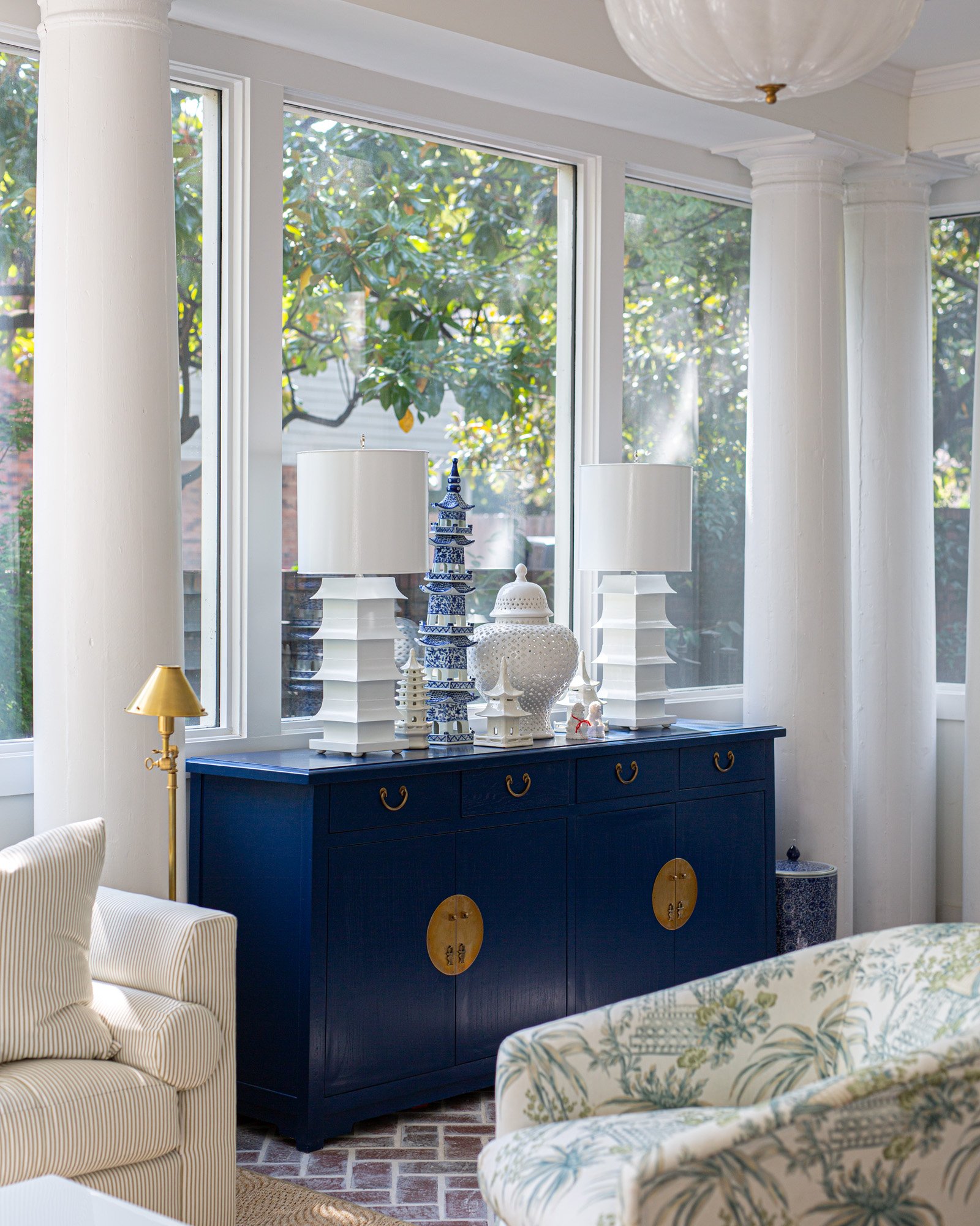 Steeped in history and sunlight, this 1912 Classic Revival home tells a story of both heritage and adventure. After a decade abroad, the homeowners returned with an eclectic collection of pieces gathered from their travels—each one carrying a memory and a sense of place. Our design sought to honor the home’s architectural grandeur while embracing the light that pours through its tall windows. Airy silhouettes, historic motifs, and sumptuous textures strike a balance between elegance and ease. In the dining room, original hand-painted wallpaper anchors the space in timeless artistry. Designed with hospitality at its heart, every room invites connection—an effortless reflection of the family’s warm and welcoming spirit.