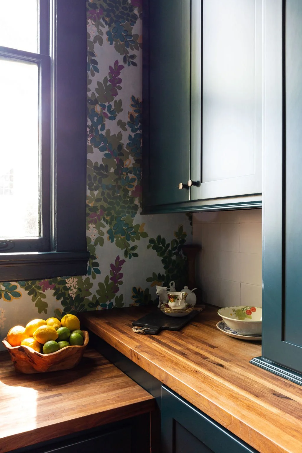 As a young family began renovating their historic (circa late-1800s) Collierville home, they called on MCI to infuse color and spunk that complimented the history and architecture of the house. Pops of peachy pink and chartreuse in the dining juxtapose the antique furniture, creating the perfect ambiance for a dinner party. MCI designed a cozy breakfast nook in the kitchen, added an emerald green tile backsplash to compliment an original stained-glass window, and brought in some drama by painting the butler’s pantry in a moody teal and adding a floral wallpaper to the ceiling and walls. The end result is the perfect fusion of modern touches in a historical space.